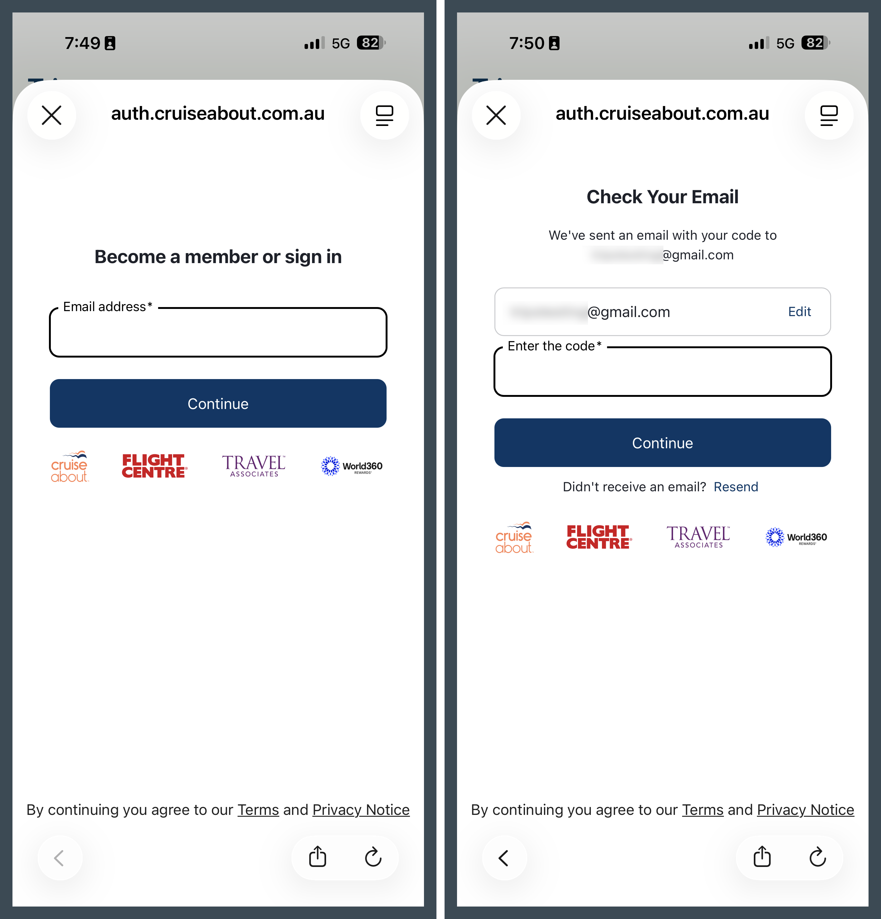 Enter the booking email and click Continue. A code will be sent to that email. Enter the code on the next screen.