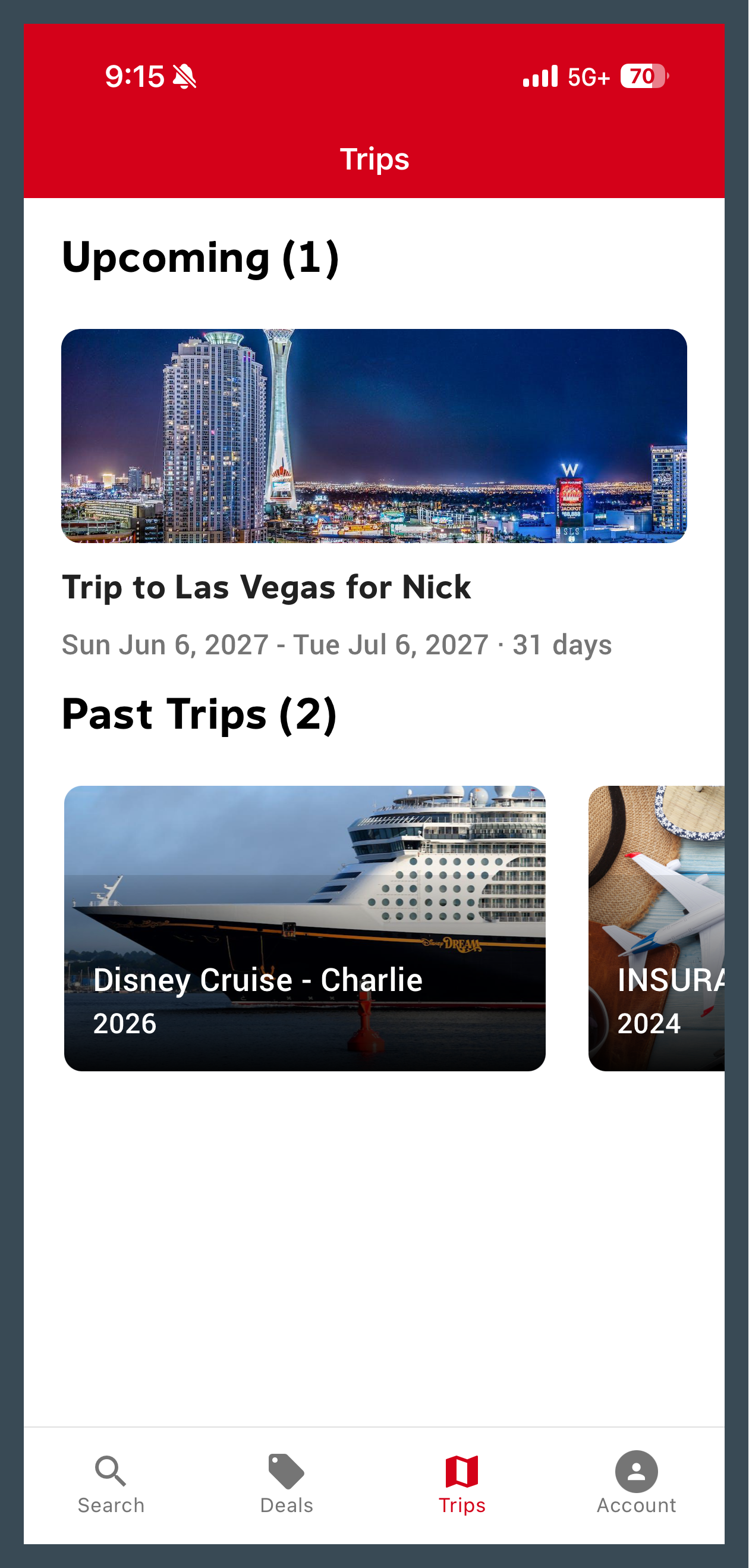 The Trips page will display Active trips, followed by a Past Trips section at the bottom.